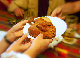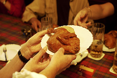Nur in der "Henne" gibt es die legendären – nach Geheimrezept – gebratenen krossen Jungmasthähnchen, die mit dem unverwechselbaren Kartoffel- und Krautsalat gereicht werden.